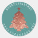 Pegatina Redonda Merry Christmas Tree Rosa Gold Verde azulada Paste