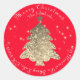 Pegatina Redonda Merry Christmas Tree RSVP Rosa Gold Red Stars