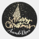 Pegatina Redonda Merry Christmas Tree Script Name Gold BlackDiamond