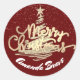 Pegatina Redonda Merry Christmas Tree Script Name Gold Burgundy