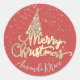 Pegatina Redonda Merry Christmas Tree Script Name Gold Naranja Red