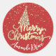 Pegatina Redonda Merry Christmas Tree Script Name Gold Red