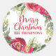 Pegatina Redonda Merry Christmas Wreath Personalizado Script Classi