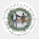 Pegatina Redonda Merry Christmas Wreath Red Berries Name Photo