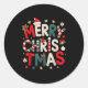 Pegatina Redonda Merry Christmas Xmas Yarn Crochet Knitting Quilter