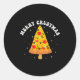 Pegatina Redonda Merry Crustmas Funny Zza Slice Christmas Tree Zza