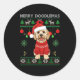 Pegatina Redonda Merry Doodlemas Goldendoodle Wearing Ugly Christma