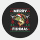 Pegatina Redonda Merry Fishmas B Fish Fishing Christmas Ugly Sweate