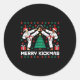 Pegatina Redonda Merry Kickmas Funny Karate Jiu Jitsu Ugly Christma