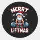 Pegatina Redonda Merry Liftmas Funny Santa Claus Workout Gym Fitnes