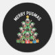 Pegatina Redonda Merry Pugmas Funny Pug Christmas Tree Holiday Long