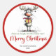 Pegatina Redonda Merry quirky reindeer sticker red green hand drawn