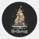 Pegatina Redonda Merry Slothmas Cute Xmas Sloth Santa Hat Navidades