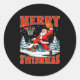 Pegatina Redonda Merry Swishmas Santa Playing Basketball Christmas