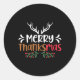 Pegatina Redonda Merry Thanksmas Christmas Thanksgiving Turkey Sant