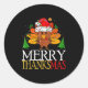 Pegatina Redonda Merry Thanksmas Happy Thanksgiving Santa Turkey