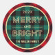 Pegatina Redonda Merry y Bright Gold Green Red Plage