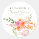 Pegatina redonda clásica de la mesa de novia de acuarela floral rosa naranja linda