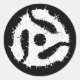 Un adaptador de inserción de registros de 45 rpm en blanco y negro desordenado para los amantes de ese rock y roll de la época.