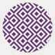 Este patrón audaz, geométrico, regal morado y blanco es un diseño ornamental original. Los diamantes púrpura con bordes blancos están rodeados de serpentines reales morados que se angulan alrededor de ellos. Los zigzags blancos separan los senderos violeta sinuosos y los diamantes de desvío. Imagen creada digitalmente. Copyright © 2013 Claire E. Skinner. Todos Los Derechos Reservados.