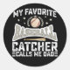 Pegatina Redonda Mi cazador favorito de béisbol me llama papá padre