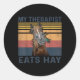 Diseño original con un caballo comiendo heno titulado My Therapist Eats Hay Horse, que representa creativamente un símbolo único de tranquilidad y naturaleza.