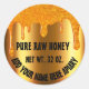 Pegatina Redonda Miel Jar Honeybee Honeycomb. Oro en las gotas de o