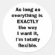 Por el amante del sarcasmo en todos nosotros. Echa un vistazo a este ingenioso diseño "Mientras todo sea exactamente como me gusta, soy totalmente flexible" en ropa, tazas, muelles, botones y otros regalos únicos.