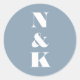 Pegatina Redonda Minimal Modern Monogram Soft Blue Elegant Wedding