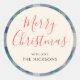 A simple, easy to customise, Scandi style sticker featuring a blue-gray plaid border with complementary neutral and warm hues. The "Merry Christmas" greeting is featured in a classic script font with your name underneath in a modern, clean sans typeface. This Christmas sticker is part of a collection of Christmas cards and other matching stationery supplies.