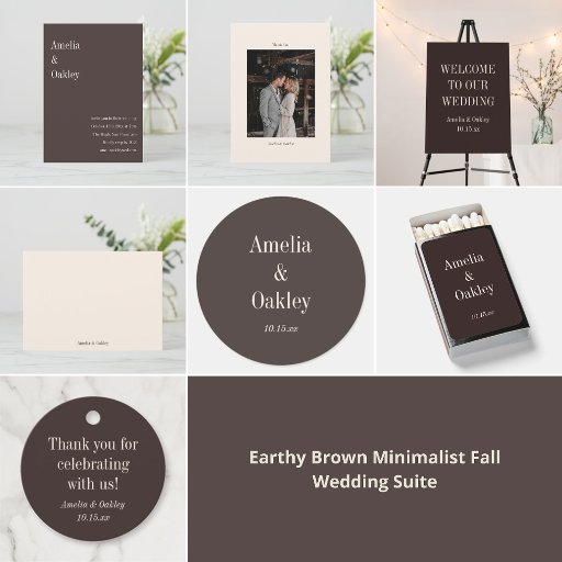 Earthy Brown Minimalist Fall Wedding SuiteDiseñado por Opal Ellery