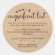 Pegatina Redonda Minimalist Kraft Script Ingredient List Bakery