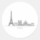 Pegatina Redonda Minimalist Paris Skyline Line Art