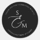 Pegatina Redonda Minimalist Script Monogram Wedding Black