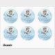 Pegatina Redonda Minimalist Teddy Bear Pilot Airplane Blue Brown