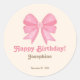 Pegatina Redonda Mínimo Cute Rosa Bow Feliz Cumpleaños
