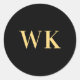 Pegatina Redonda Mínimo Monograma Moderno Iniciales Oro Negro
