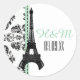 Pegatina Redonda MINT GREEN Monogrammed Damask Eiffel Tower Boda