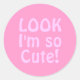 Pegatina Redonda Mira, soy muy lindo. Rosa.