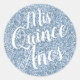 Pegatina Redonda Mis Quince Años Quinceañera Purpurina azul claro