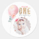 Pegatina Redonda Miss Maravilloso Globo Rosa Primera Foto de cumple