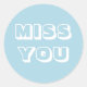 Pegatina Redonda Miss You, azul claro blanco moderno negrita