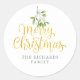 Pegatina Redonda Mistletoe Gold Script Merry Christmas Nombre de la