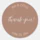 Decoren su embalaje de favoritas de boda con estos pegatinas redondos que presentan un moderno color marrón mocha con escritura blanca y estilizada. Personalice a sus pegatinas reemplazando los nombres de novias y bodas por los suyos. Seleccione el tamaño de su pegatina.