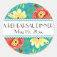 Este es un Pegatina de la cena de ensayo que coincide con el conjunto de invitados de boda del mismo nombre. COLOR PALETTE: azul turquesa, azul verde azulado, coral, rojo, amarillo, naranja y verde limón con un toque marrón chocolate. COLECCIÓN DE DISEÑO: Notas de agradecimiento coincidentes, tarjetas de nota. Creado a partir de las originales obras de arte pintadas a mano por Audrey Jeanne Roberts, este moderno diseño floral imaginativo combina a la moda los colores. Flores ranunculus, en forma de círculo, con varios elementos florales brillantes, lindos y estilísticamente renderizados se arrojan sobre el color de fondo. Algunas se parecen a rosas silvestres, bayas y margaritas con hojas de estilo helecho. Un marco de estilo de corchete tiene puntos de polka y un borde de tipo giratorio de caligrafía. Con este patrón hay una amplia gama de combinaciones de colores disponibles.