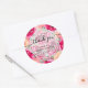 Pegatina Redonda Moda Acuarela Flores Rosa Gracias