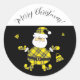 Pegatina Redonda Moda Amarillo Tartán Santa con bolsa