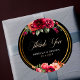 Pegatina Redonda Moda boda floral negro rojo gracias