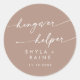 Este ayudante de la resaca de taupe neutro de moda boho favorece al pegatina redondo clásico es perfecto para un boda minimalista. El estilo bohemio moderno de tonos beige marrones presenta una caligrafía rústica sencilla con un estilo único y clásico. Personalice a sus pegatinas favoritos con sus nombres y fecha de boda.
