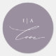 El pegatina boda simple y moda polvoriento, morado y blanco, presenta una caligrafía de amor elegante en escritura blanca y un monograma clásico.